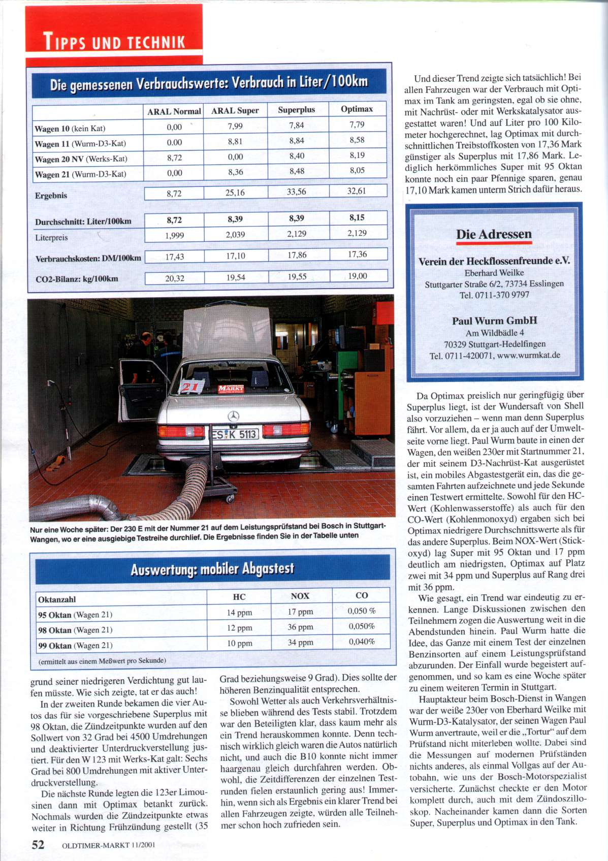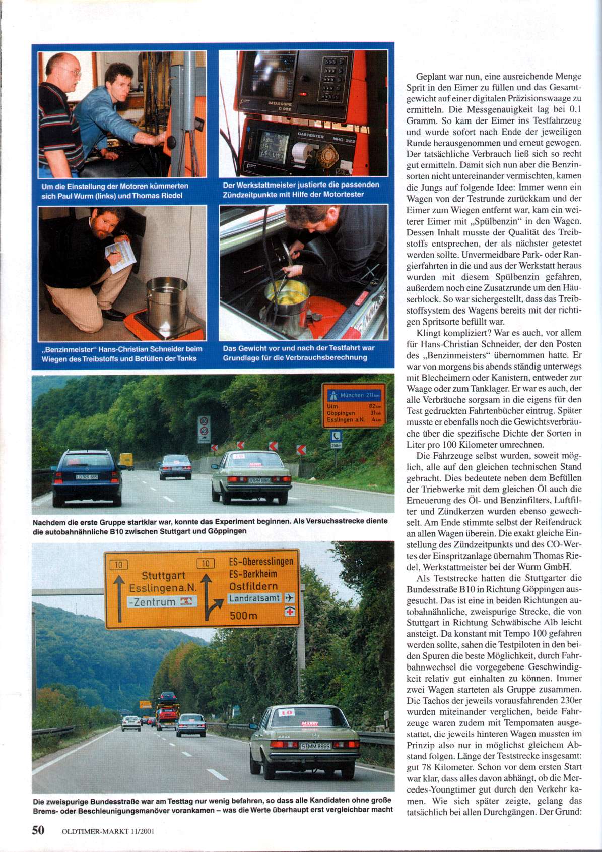 Verbrauchstestfahrt für Oldtimer-Markt